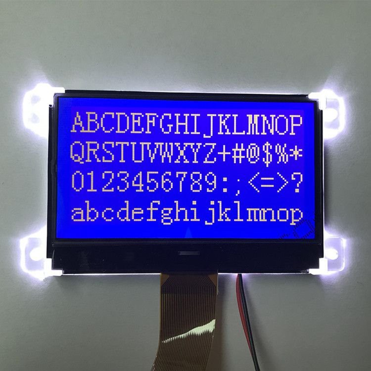 Modil ekran LCD pou entèrfon aleka se 2.8 pous LCD grafik ble ak 128x64 piksèl, karaktè blan sou background ble, STN, LCD Transmissive, ST7565R kontwolè, 4 pcs blan dirije ekleraj, FPC Connector, chip sou glas la.